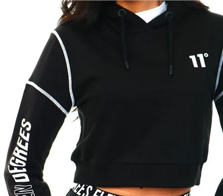 11 Degrees Black Cropped Contrast Coverstitch Pullover Hoodie -Jack & Jones Store 20853 1