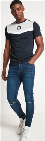 11 Degrees Navy / Vapour Grey / White Cut And Sew Short Sleeve T-Shirt