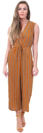 Ax Paris Mustard Stripe Culotte Jumpsuit With V Neck -Jack & Jones Store 14265 1