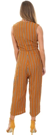 Ax Paris Mustard Stripe Culotte Jumpsuit With V Neck -Jack & Jones Store 14265 3