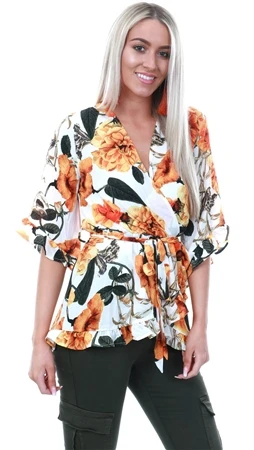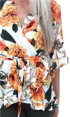 Ax Paris Orange Floral Frill Wrap Top -Jack & Jones Store 15756 2