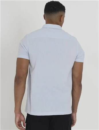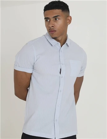 Brave Soul Baby Blue Seersucker Pattern Short Sleeve Button Shirt