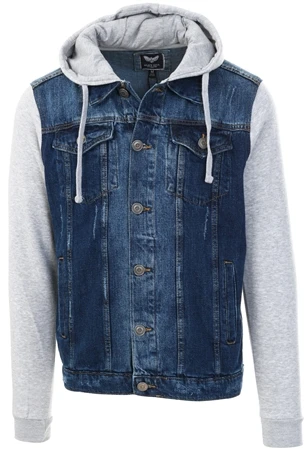 - Contrasting denim with light grey hood and sleeves