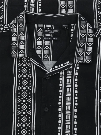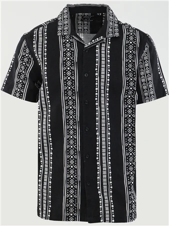 Brave Soul Jet Black / Optic White Pattern Detail Short Sleeve Shirt