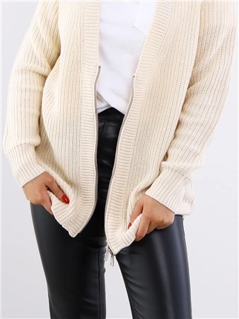 As a cute layer or as a chic, knitted jacket. This heavy knitted cardigan is the perfect addition to your wardrobe. An easy and cosy style that keeps you cosy and warm. Wear it as an extra layer to your already smart outfit, or to tone down your dressy look by adding comfort to it