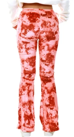Daisy Street Peach Velvet Tie Dye Flare Trouser