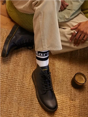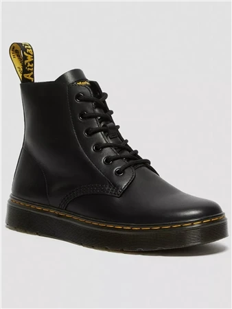 A stripped back evolution of our ankle height 6 eye 101 boot with minimised detailing for understated everyday wear. Made from full-grain Lusso leather, the 6 eye Thurston Chukka boot is detailed with tonal eyelets for low-profile impact. Built on our comfortable flat Vibe sole, the Thurston Chukka is marked with yellow stitching, a branded tongue and a subtle AirWair pull tab.