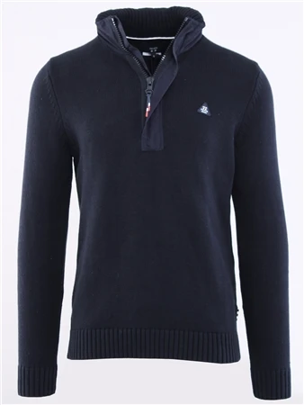 Quality knitwear for everyday wear. Knitted half zip with hood