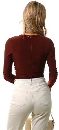 - Brown satin fabric bodysuit