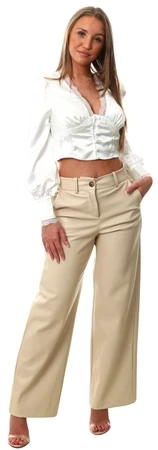 Glamorous White Satin Long Sleeve Lace Trim Top