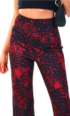 Missi London Red / Black Animal Print Flare Trousers -Jack & Jones Store 20878 1