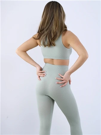 - Mint Green Seamless Ribbed High Waisted Leggings