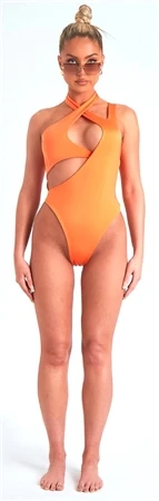 - Petra Orange Halter Neck Cut Out Swimsuit