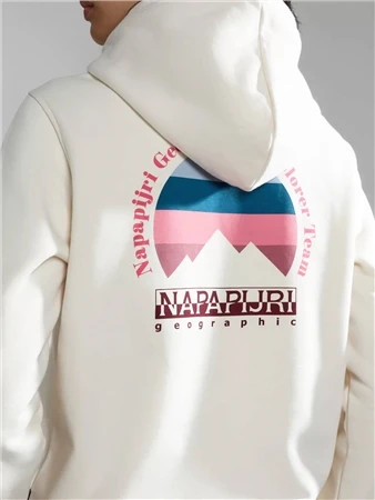 An outdoor, urban aesthetic defines the Rope hoodie for women. Crafted primarily from cotton for increased comfort, this hooded sweatshirt is finished with an adjustable hood and a Napapijri Geographic logo with a seasonal twist on the chest