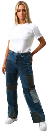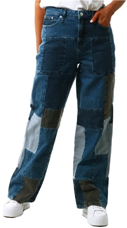 Neon & Nylon Blue / Medium Blue Denim Wide Patchwork Detailed High Waisted Jeans
