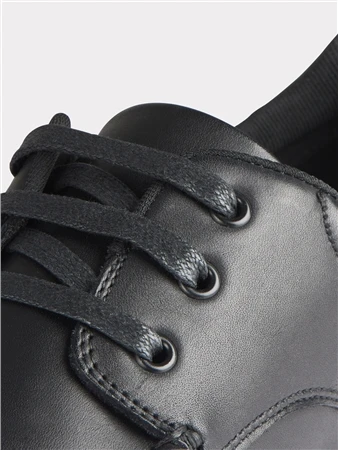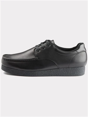 A classic understated moccasin shoe with minimal branding makes this the perfect choice for the more conservetive school. The black full grain leather upper sits on our durable wedge outsole with signature skeleton footprint design while the memory foam insert provides superior underfoot comfort