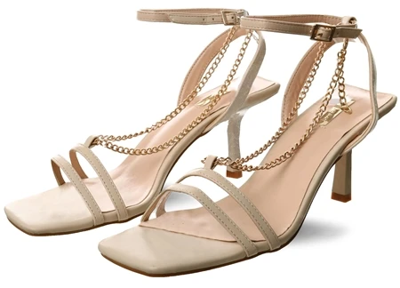 No Doubt Beige Strappy Chain Heels -Jack & Jones Store 22574 1