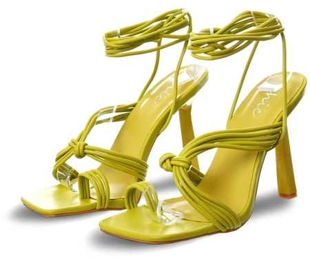 - Lime PU Square toe heels