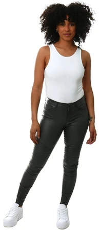 These black leather look trousers by ONLY are perfect for bringing a sense of rock chick to your look. The leather legs feature stylish texture panels. Team yours with one of our body tops and heels to complete the look.