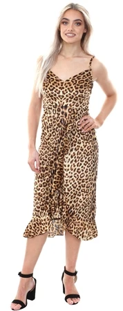 Parisian Leopard Velvet Midi Wrap Over Frill Dress