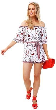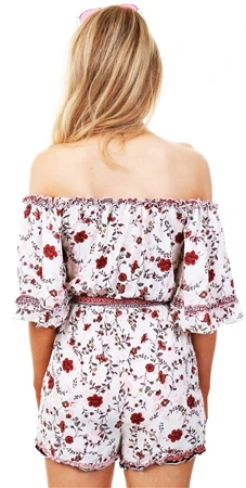 Parisian White Floral Print Bardot Tie Waist Playsuit