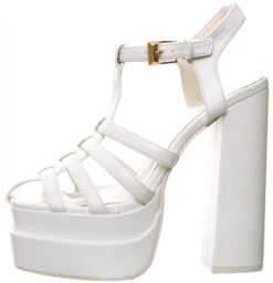 Public Desire White Imogen Croc Square Toe Strappy Lace Up Heels