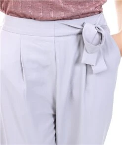 Style London Light Grey Waist Tie Lace Trim Trouser