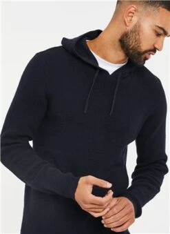 Threadbare Navy Twist Mock T-Shirt Knitted Hoodie