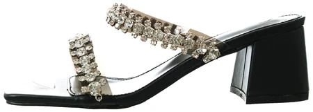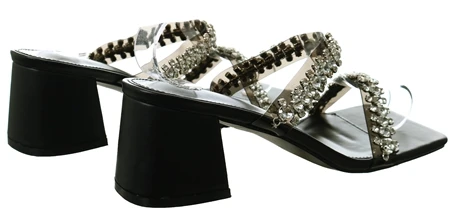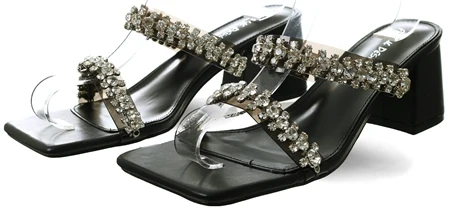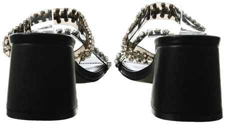 - Black patent heels with perspex straps