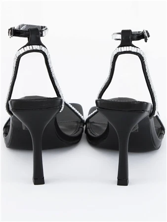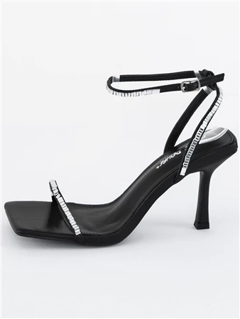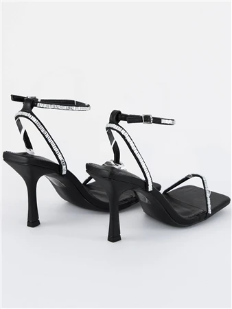 Ready to meet the simple but sexy shoe of your dreams? Introducing the Carla Black PU Diamante Barely There Square Toe Heels! the perfect addition to your shoe collection. Featuring a sleek and minimalist design,the square toe, black PU material and delicate diamante detailing. As the saying goes, “simple is sexy,” and these heels prove just that. Whether you’re dressing up for a night out or adding a touch of class to your everyday attire, the Carla Heels are sure to elevate your look to the next level