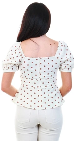 Qed Cream Mocha Polka Dot Buckle Puff Top - Image 4