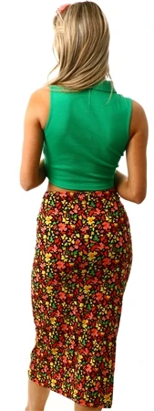 Qed Red Floral Pattern Ruched Midi Skirt -Jack & Jones Store 25682 1