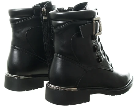 Redz Black Lace Up Biker Boot