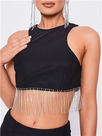 Make them stare this season in our Diamanté Crop Top! Featuring a racer shape neckline and a gorgeous diamanté trim, make sure you don’t miss out on this beautiful piece!
