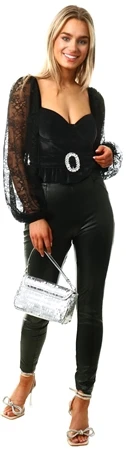 Saint Genies Black Velvet / Lace Long Sleeve Top -Jack & Jones Store 27043 2