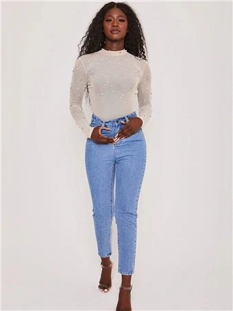 Make them stare this season in our beaut mesh bodysuit! Featuring mesh fabric, diamante and pearl detail and long sleeved, it’s a staple for the upcoming season