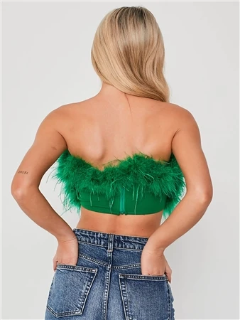 Have all eyes on you in our faux fur crop top! Featuring a strapless neckline and faux fur trim, you’ll definitely stand out this season!