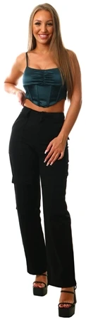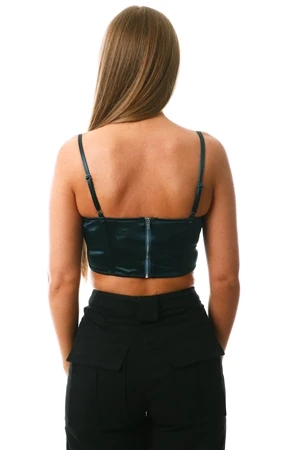 Saint Genies Petrol Neala Colbalt Stretch Satin Strap Corset Top