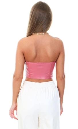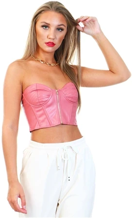 Saint Genies Terracotta Faux Leather Zip Front Corset Top -Jack & Jones Store 19758 1