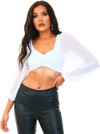 Saint Genies White Long Sleeve Crop Top -Jack & Jones Store 19672 2