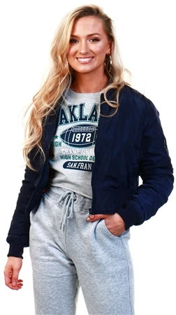 Vivichi Navy Meg Pull-Ring Zip-Up Bomber Jacket