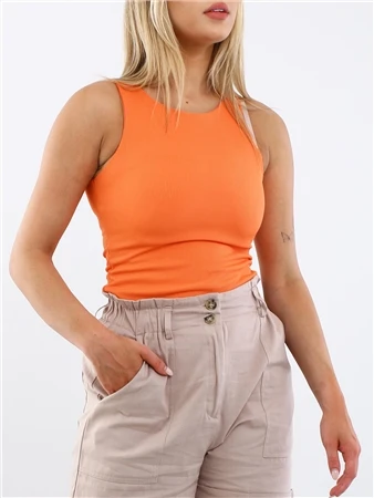Vivichi Orange Racer Back Ribbed Bodysuit